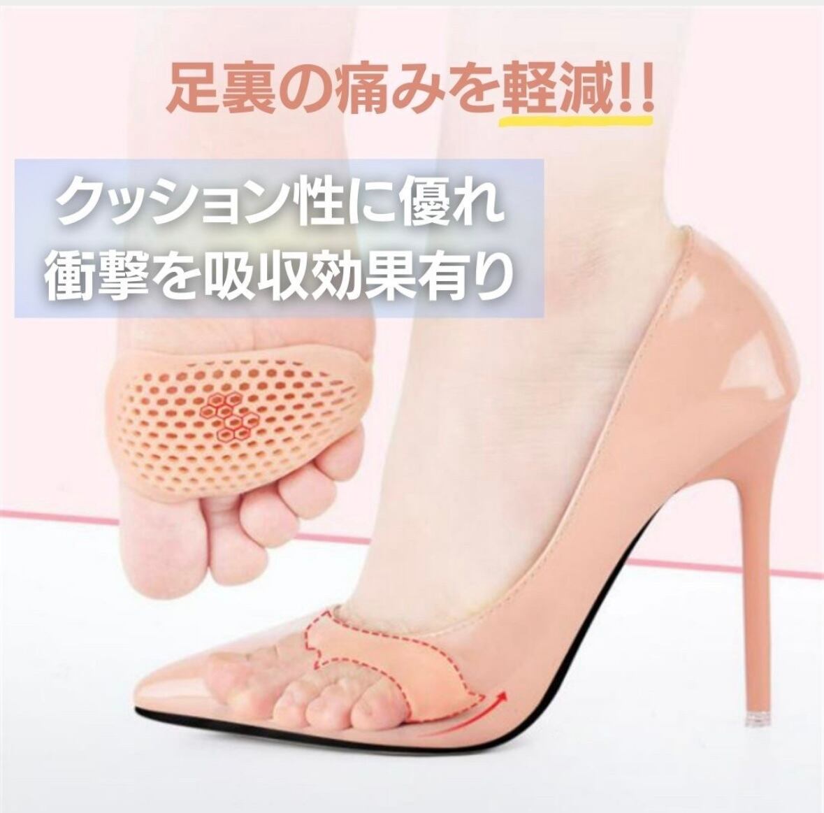 ソフトであたりの良いシリコン素材を使用し、摩擦によっておこる前方の足裏への負担を軽減します。特に前に負担がかかりやすいパンプス、ウォーキングシューズ、ビジネスシューズ、フラットシューズ、バレエシューズにおすすめです